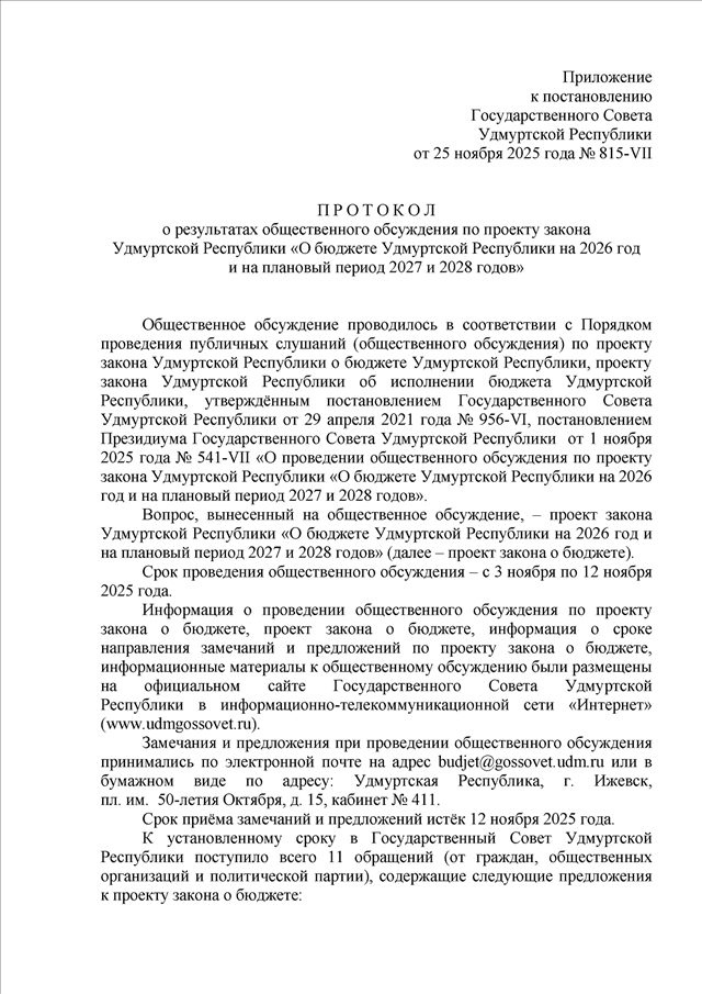Постановление Государственного Совета УР от 25.11.2025 N 815-VII
