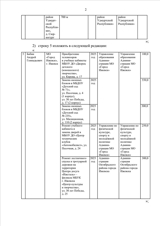 "О внесении изменений в Перечень наказов избирателей депутатам Государственного Совета Удмуртской Республики на 2025 год"