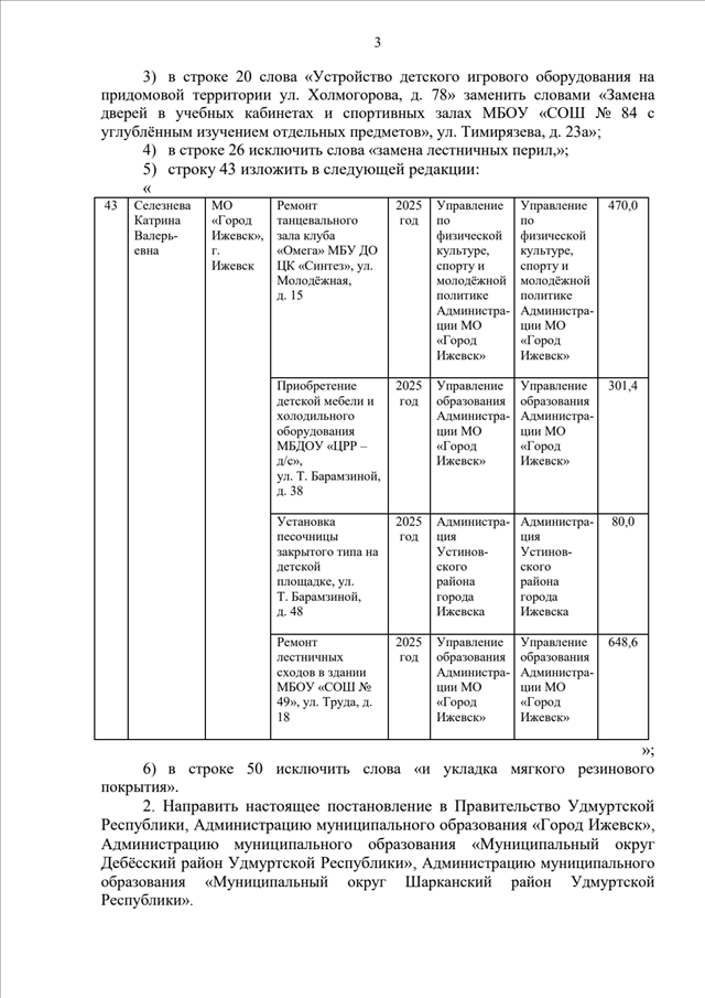 "О внесении изменений в Перечень наказов избирателей депутатам Государственного Совета Удмуртской Республики на 2025 год"