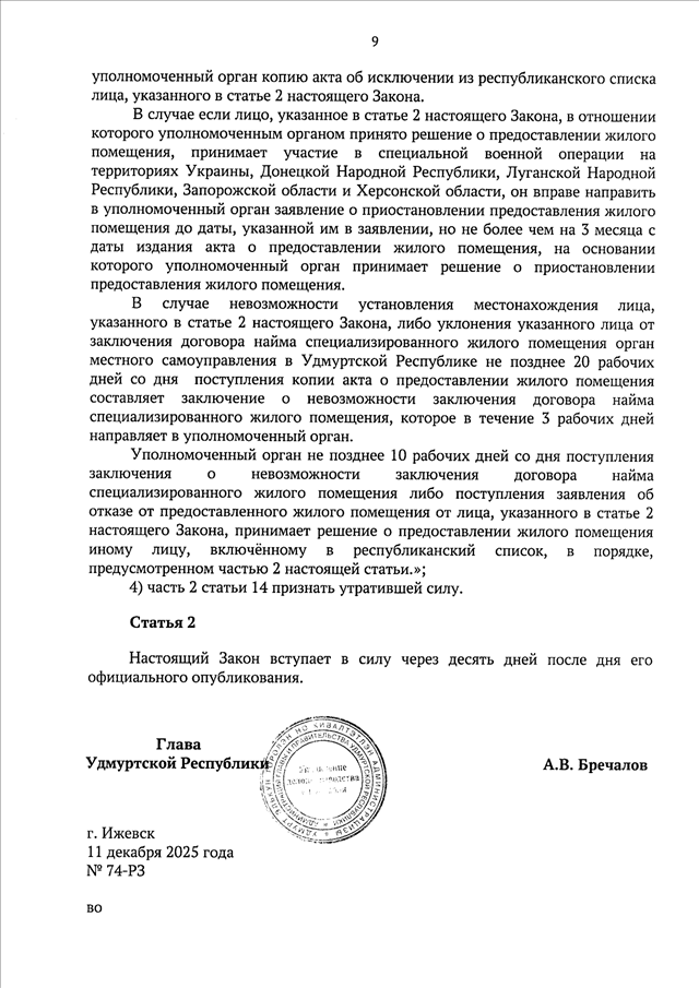 Закон УР от 11.12.2025 N 74-РЗ