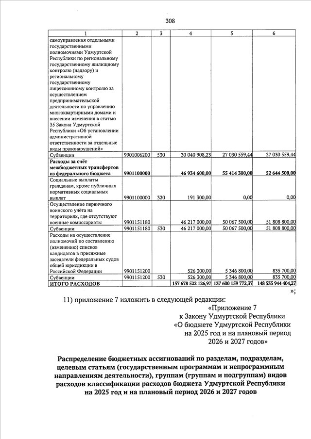 "О внесении изменений в Закон Удмуртской Республики "О бюджете Удмуртской Республики на 2025 год и на плановый период 2026 и 2027 годов"