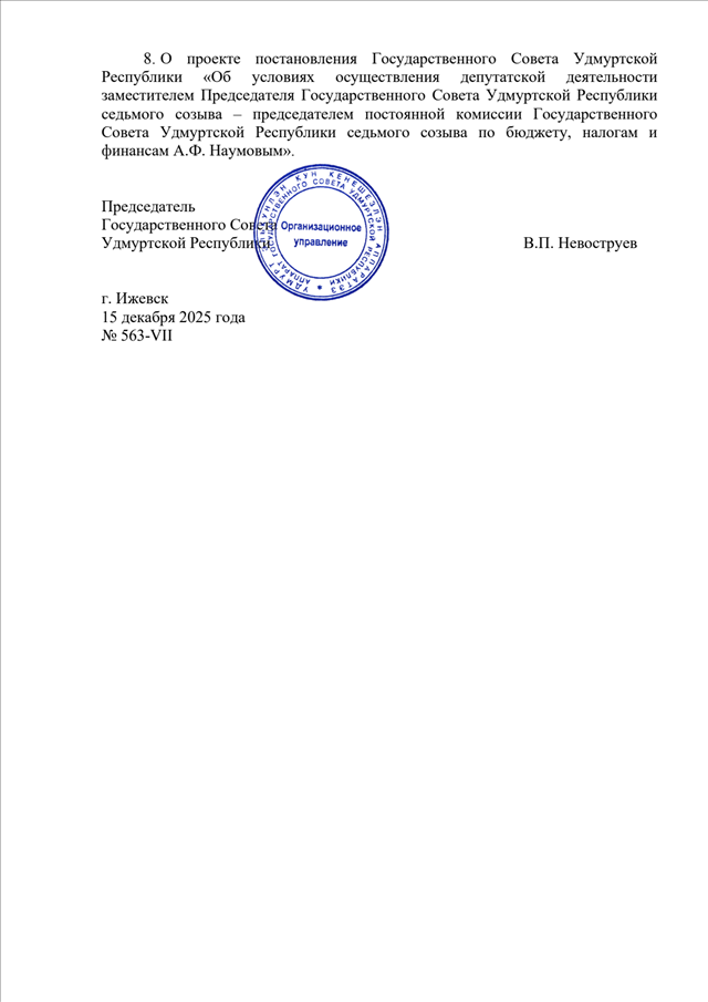 Постановление Президиума Государственного Совета УР от 15.12.2025 N 563-VII