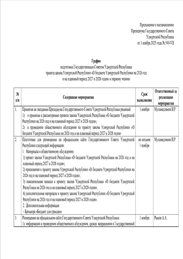 Постановление Президиума Государственного Совета УР от 01.11.2025 N 540-VII