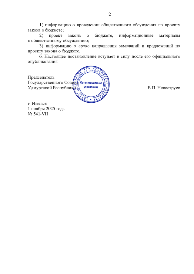 Постановление Президиума Государственного Совета УР от 01.11.2025 N 541-VII