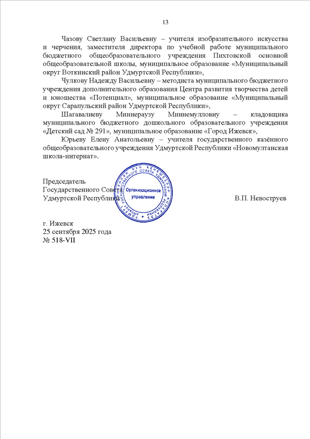 Постановление Президиума Государственного Совета УР от 25.09.2025 N 518-VII