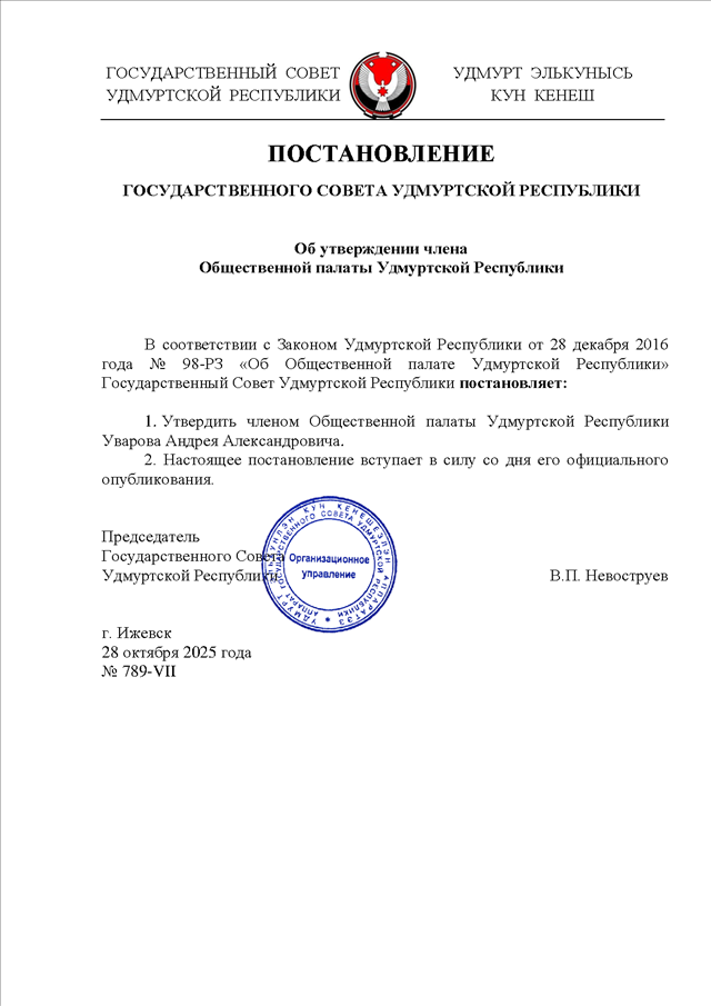 Постановление Государственного Совета УР от 28.10.2025 N 789-VII