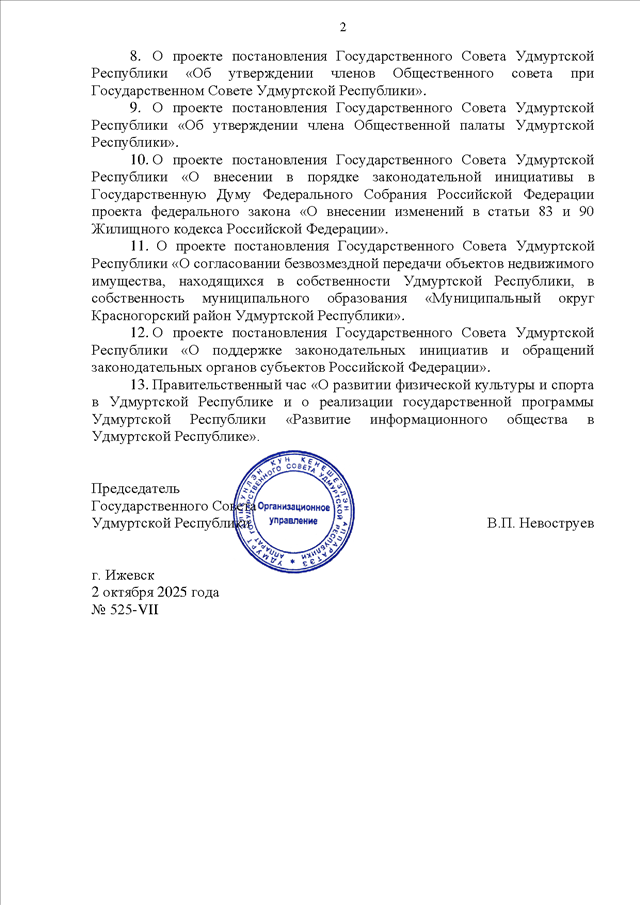 Постановление Президиума Государственного Совета УР от 02.10.2025 N 525-VII