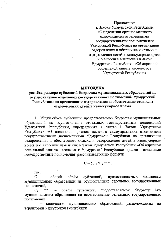 (вместе с "Методикой расчета размера субвенций бюджетам муниципальных образований на осуществление отдельных государственных полномочий Удмуртской Республики по организации оздоровления и обеспечению отдыха и оздоровления детей в каникулярное время") (принят Государственным Советом УР 28.10.2025)