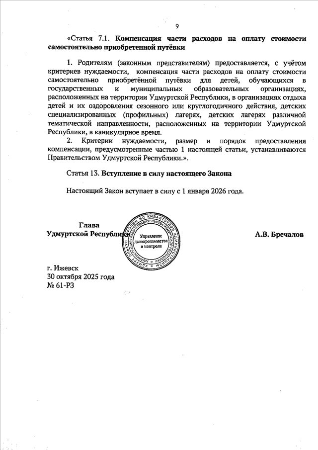 Закон УР от 30.10.2025 N 61-РЗ