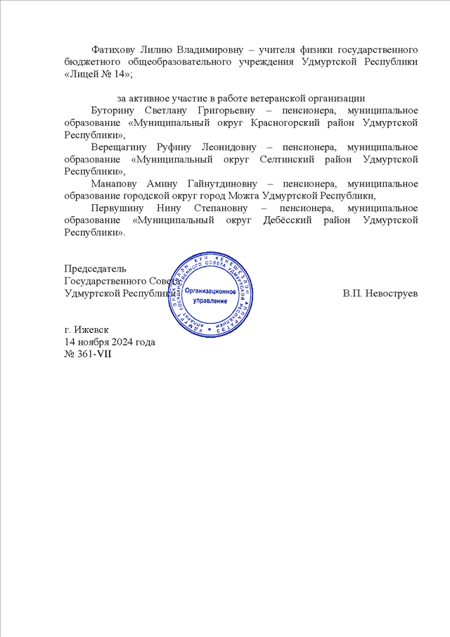 Постановление Президиума Государственного Совета УР от 14.11.2024 N 361-VII