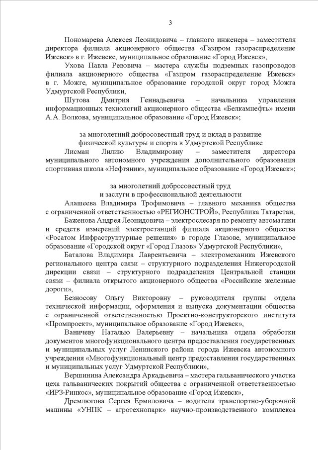 "О награждении Почетной грамотой Государственного Совета Удмуртской Республики"