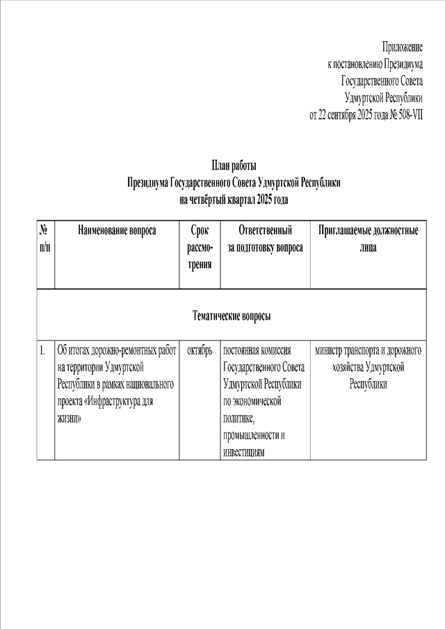 Постановление Президиума Государственного Совета УР от 22.09.2025 N 508-VII
