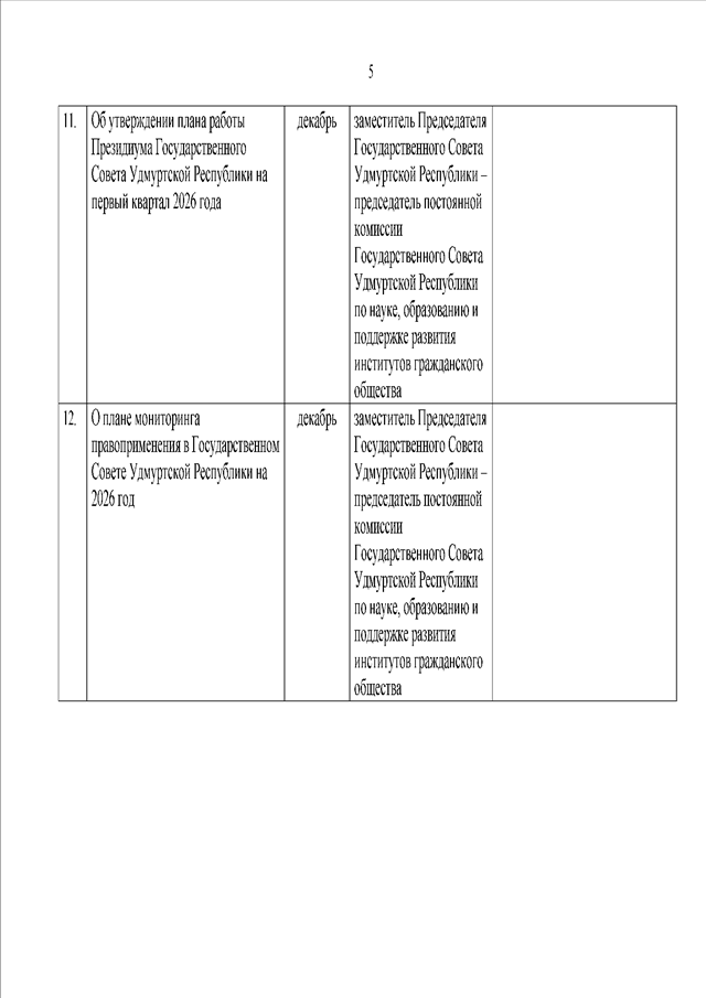 "Об утверждении плана работы Президиума Государственного Совета Удмуртской Республики на четвертый квартал 2025 года"