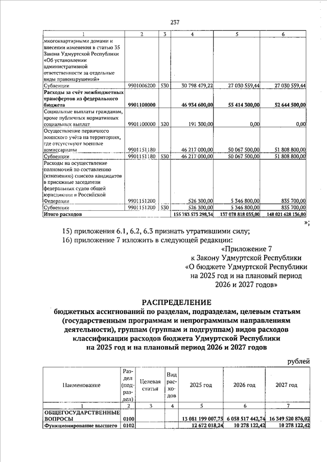 "О внесении изменений в Закон Удмуртской Республики "О бюджете Удмуртской Республики на 2025 год и на плановый период 2026 и 2027 годов"